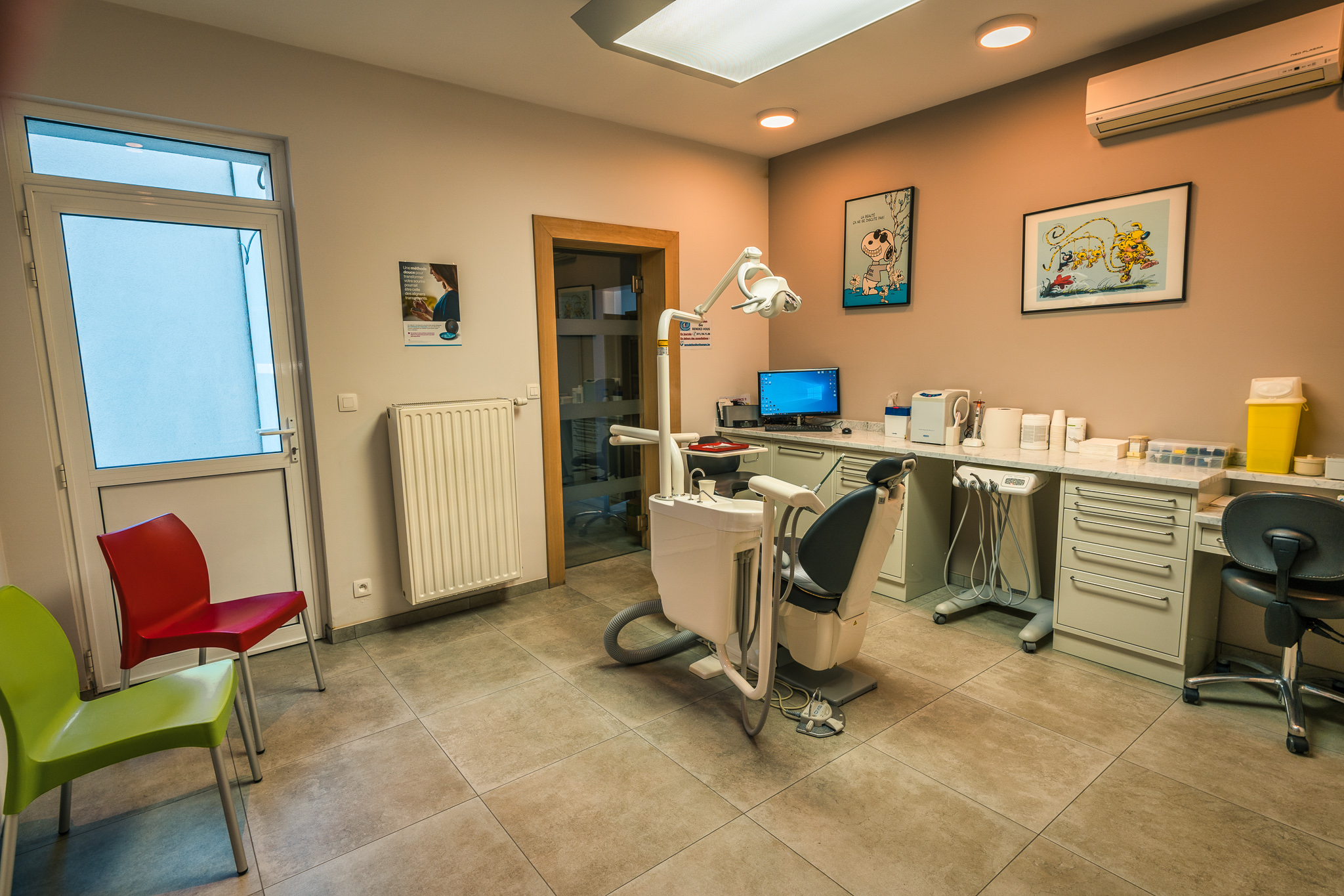 Le cabinet dispose de 5 installations entièrement équipées, deux salles d’attente, une salle d’hygiène ainsi qu’une salle de jeux.
